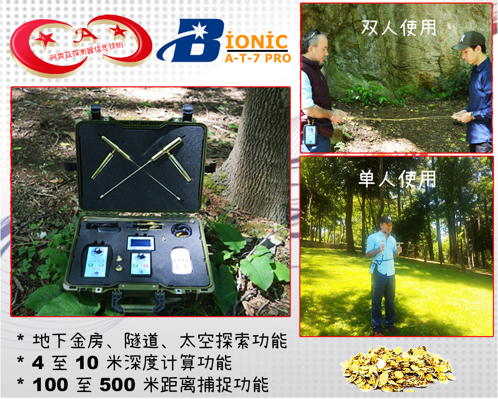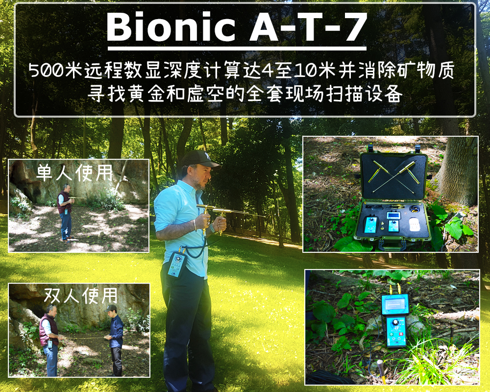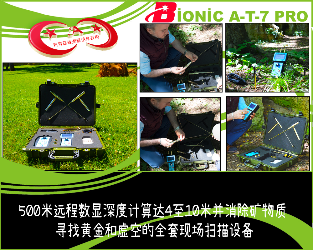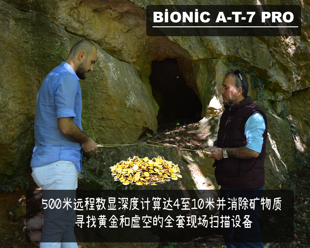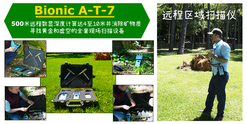区域扫描设备 Bionic AT 7 在您迄今为止所知道的区域扫描设备中具有非常不同的操作系统。 Bionic场扫描设备具有金、银、太空和全金属识别模式。Bionic at 7 区域扫描设备具有保证扫描100米到500米远距离及其周围环境的特点。由于Bionic场扫描仪特制的夹持器中的特殊混合配方,它可以检测到地下的大宝物、皇家陵墓、地窖、隧道入口,误差极小。得益于数字屏幕接地系统盒,它可以在不受大多数矿质土壤影响的情况下捕捉目标。