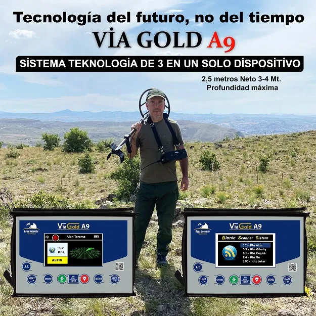 El detector via gold a9 puede distinguir entre un 60-70% de objetos y tesoros de oro transparente garantizado gracias a su software especial y diseño en escaneo gráfico 2D en vivo y visualización de valor numérico. El detector con pantalla a9 Via Gold se puede distinguir entre un 60-70% de metales sin valor. Mientras busca oro, tesoros y tesoros, el sistema via gold a9 2D, que tiene la característica de escanear un área de 100 metros, ofrece la oportunidad de buscar metales y cavidades, con un super precio en comparación con sus competidores y tiene la oportunidad de escanear el suelo con 3 tecnologías diferentes.