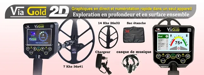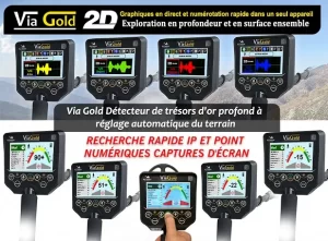 Le détecteur Via Gold peut distinguer les objets en or et les trésors avec une clarté garantie à 70%, grâce à sa fonction graphique 2D en direct et à un logiciel et une conception spéciale sur l’écran de valeur numérique. Le détecteur Via Gold peut distinguer les métaux sans valeur comme 70 % sans valeur.