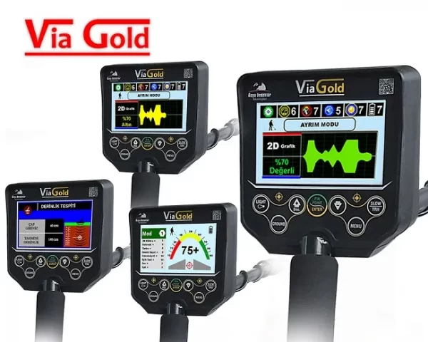 Le détecteur d’or Via Gold super prix, conçu comme 2 technologies différentes, vous offre la possibilité de l’utiliser dans 2 systèmes différents. Outre le prix du détecteur d’or Via Gold, il offre des options de travail pour toutes sortes de sols minéraux avec un système automatique. Le détecteur de trésors Via Gold peut trouver des trésors enfouis et des trésors dans la roche en mode de recherche graphique en direct 2D, qui est un mode de recherche lent, et distingue l’or, l’argent, le cuivre, le bronze et les métaux sans valeur de 70%. Via Gold les images de l’écran.
